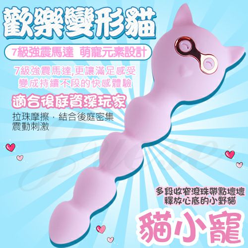 歡樂變形貓 7段變頻震動前列腺矽膠按摩棒-貓小寵