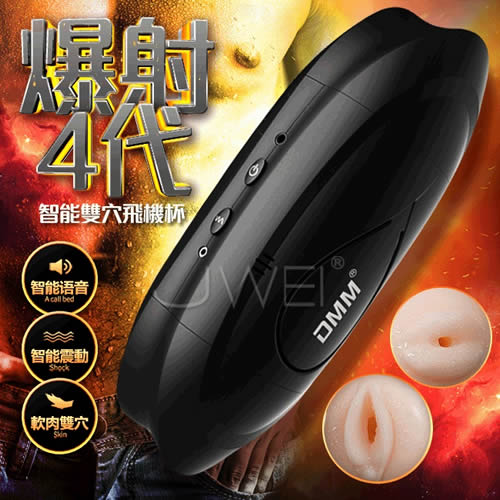 DMM.爆射4代 10段變頻智能發聲互動雙穴飛機杯-黑色