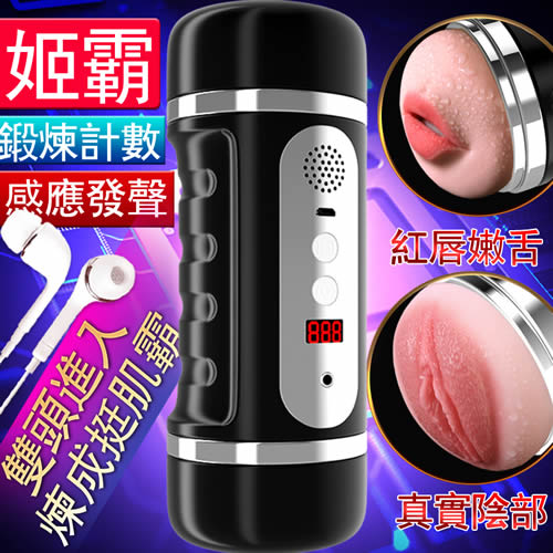 姬霸三代智能鍛練杯 ‧ 雙頭逼真女陰+口舌飛機杯﹝感應記數+感應震動+耳機呻吟叫聲+USB充電﹞