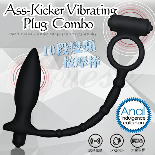 Ass-Kicker Vibrating Plug Combo 10段變頻震動鎖精後庭矽膠按摩器-震環&肛塞